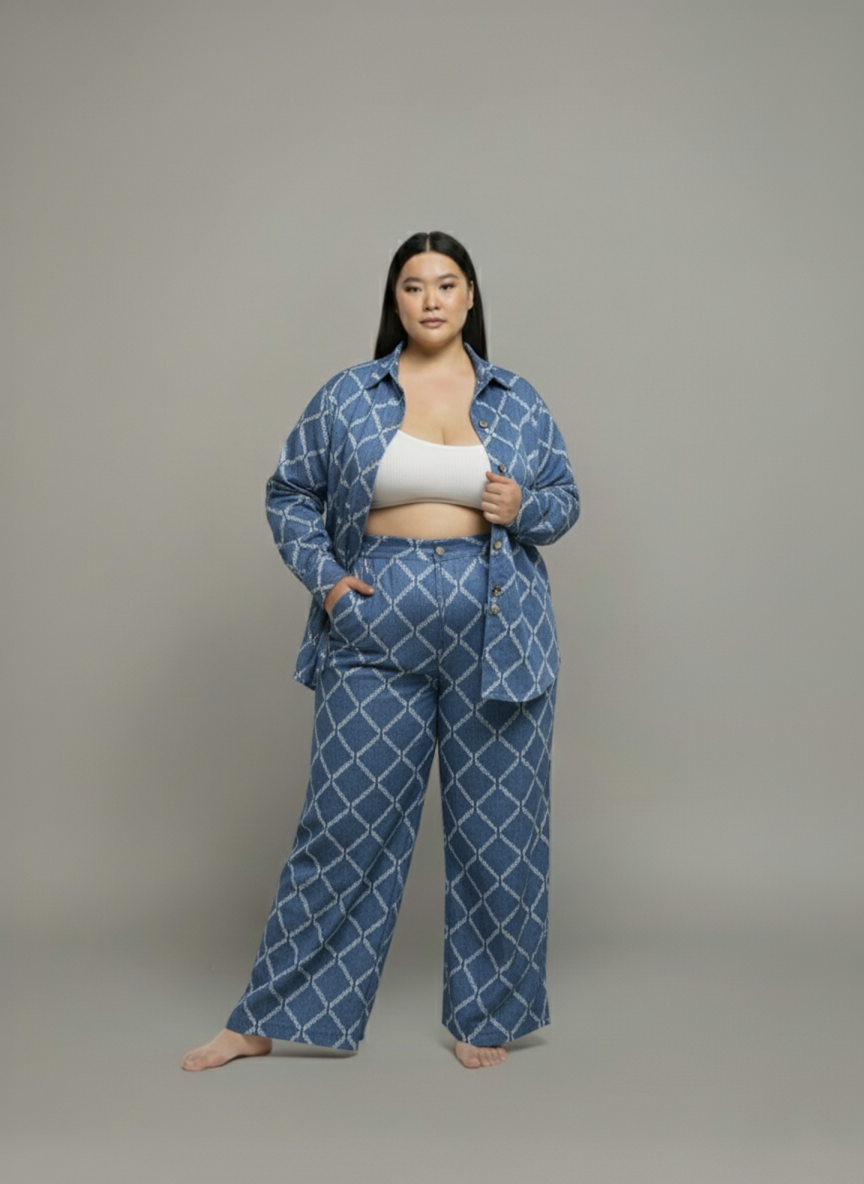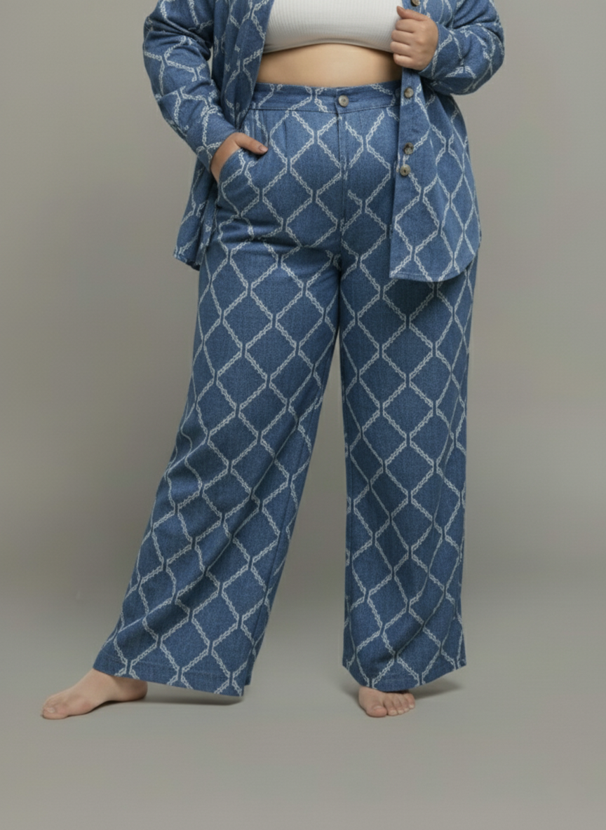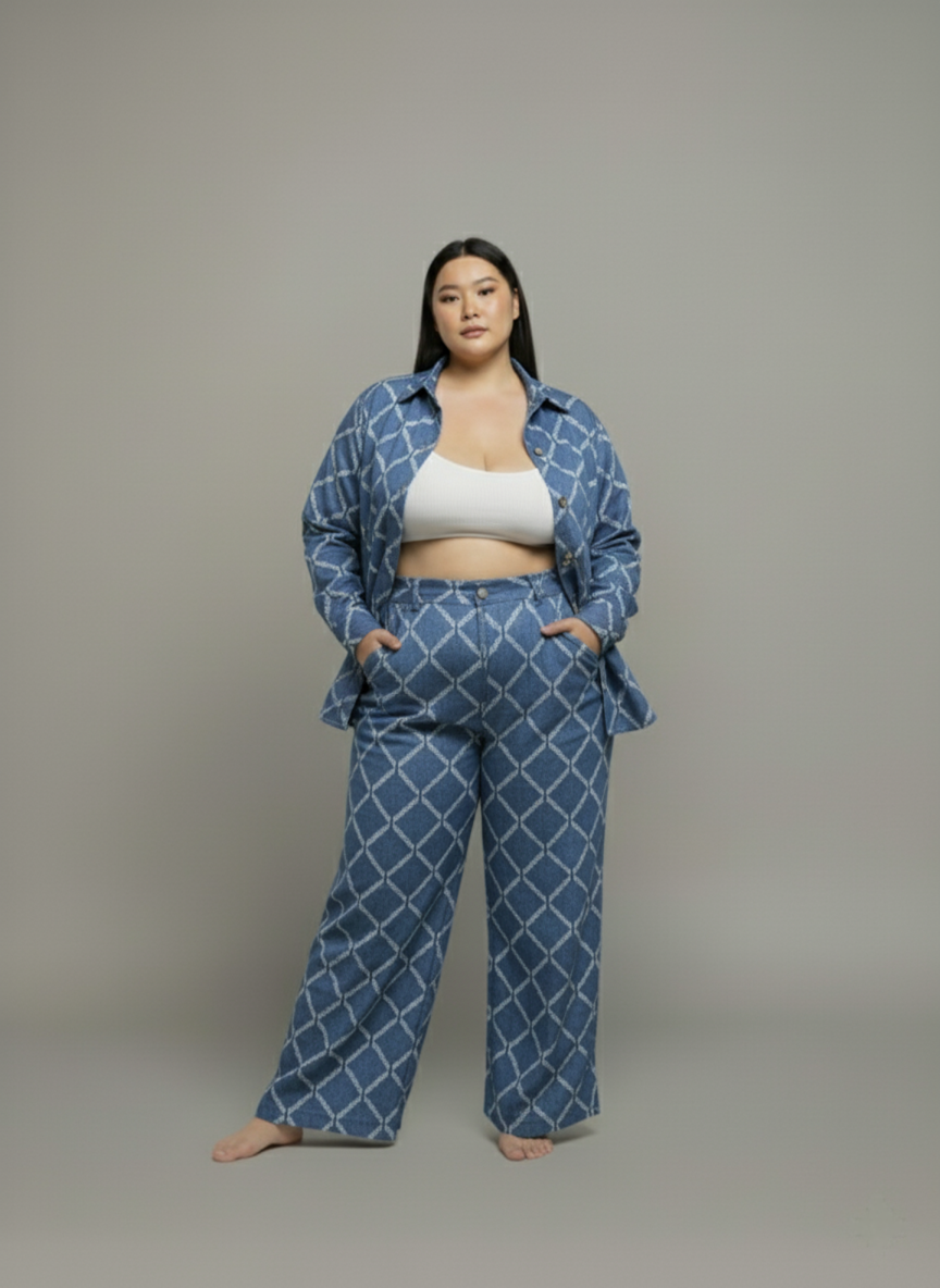 מכנסיים רחבים בגזרת High Waist עם דוגמת תפירה ייחודית שנותנת טוויסט עדכני לג׳ינס קלאסי. המותן הגבוהה והגזרה המשוחררת מחמיאות לכל מבנה גוף ומספקות שילוב מושלם בין נוחות לסטייל.