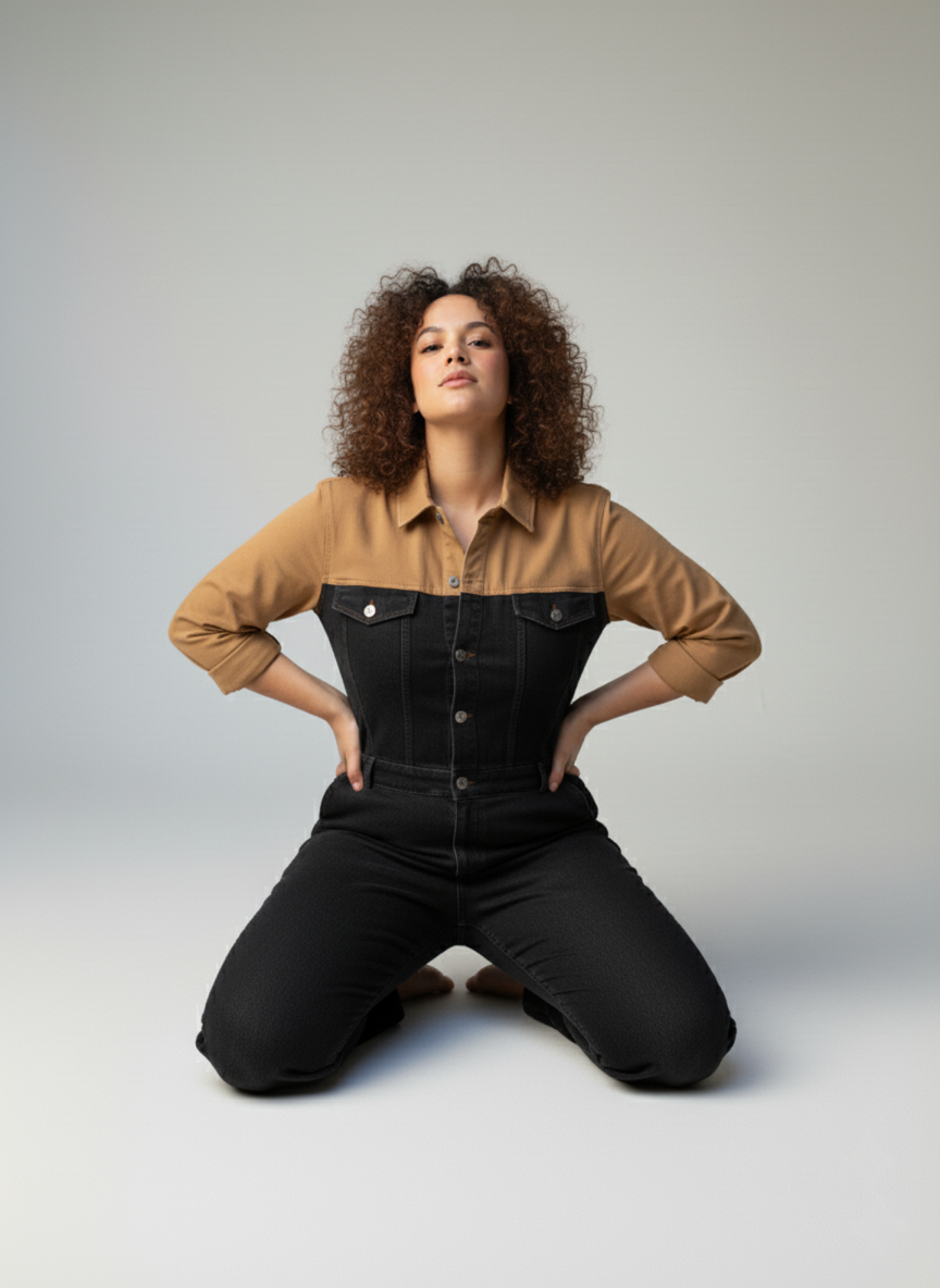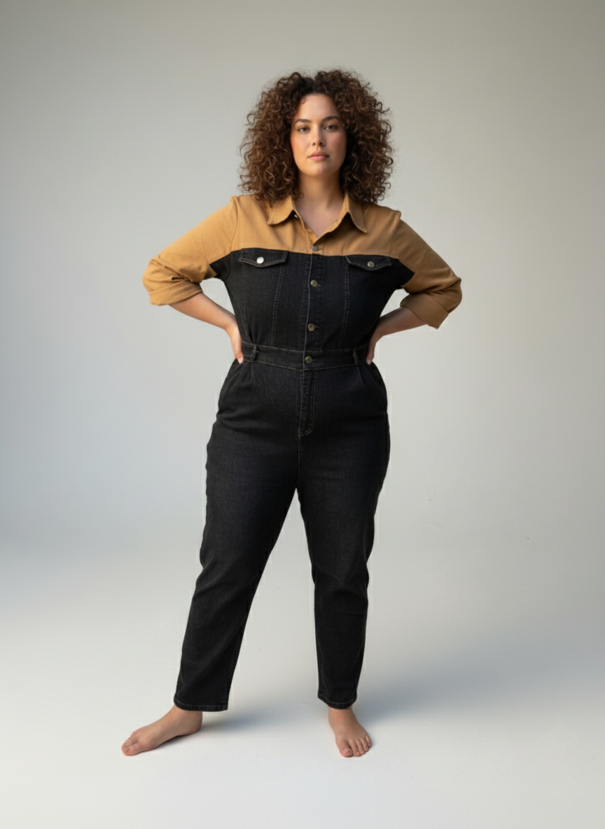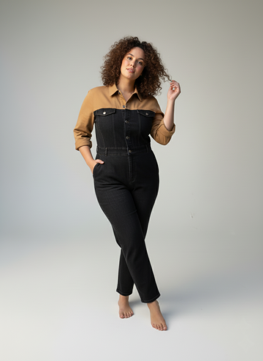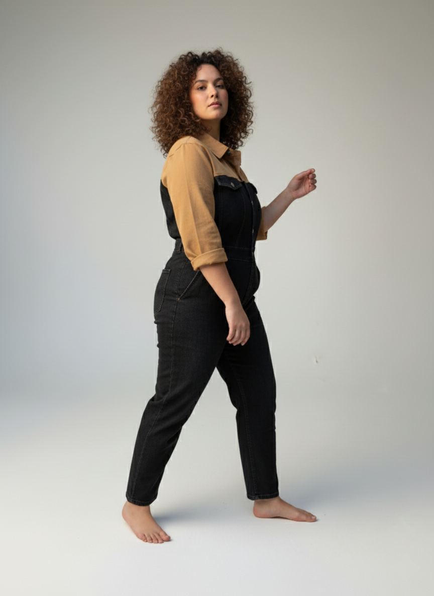 השילוב המושלם בין שיק מחויט לנוחות יומיומית. אוברול בצבעי שחור-קוניאק עם גזרת ג׳ינס ישרה, מותן מודגשת וכיסים פונקציונליים – פריט אחד שנותן הופעה מלאה. האוברול מגיע בגזרה צמודה ומחמיאה – מדגיש את הקימורים הטבעיים ויוצר מראה נקי ומעוצב. אם את אוהבת לוק יותר משוחרר/אוברסייז, קחי מידה אחת גדולה יותר.